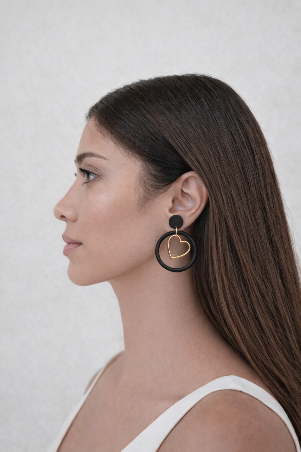 Noir Heart Loop Drop Earrings